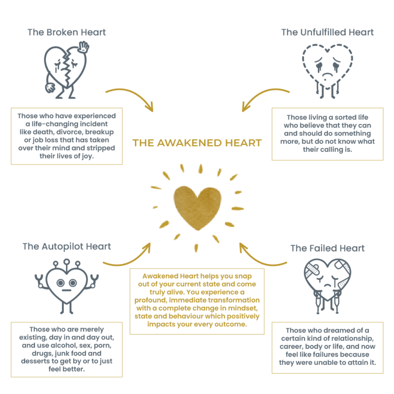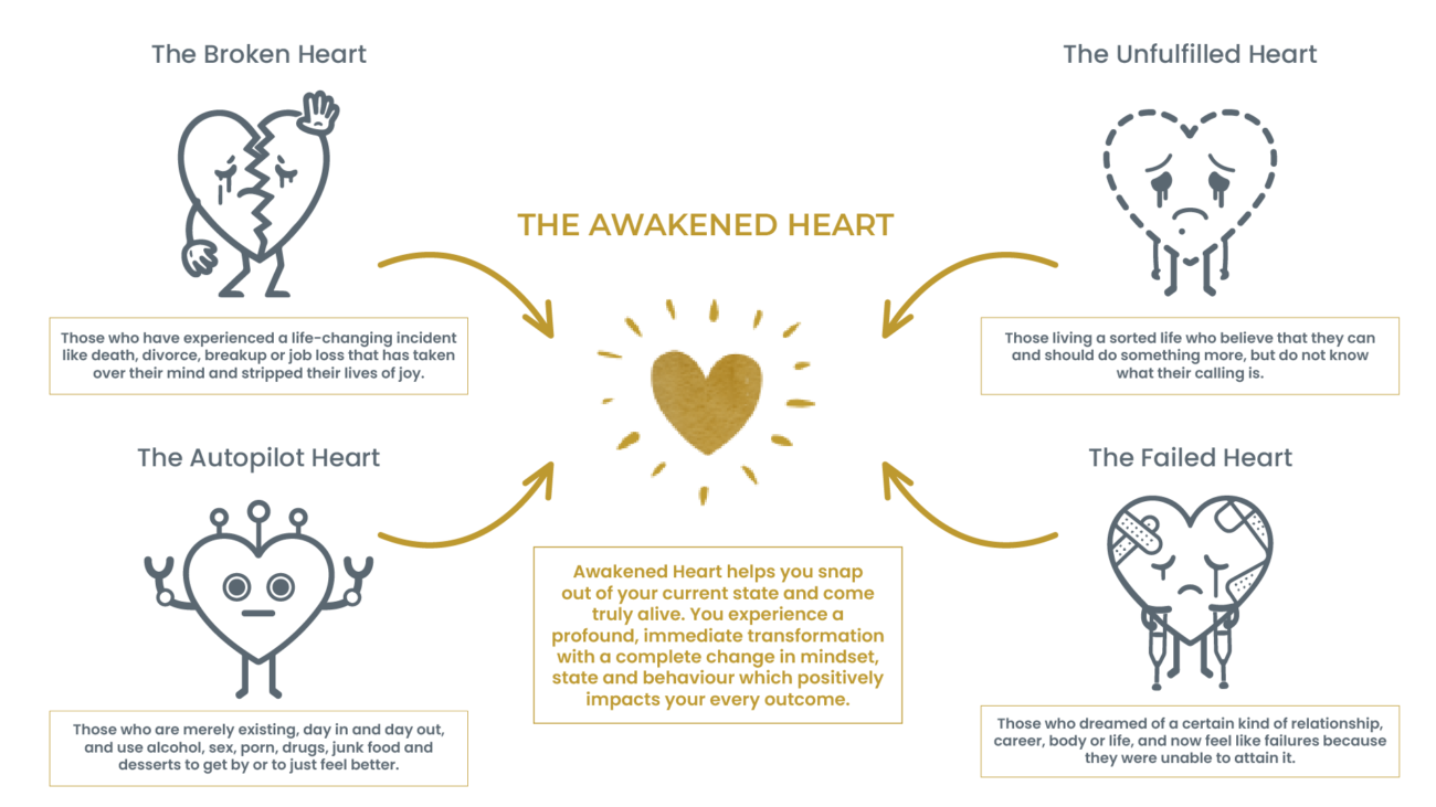 Awakened Heart will bring the joy back in your life. It will transform your pain into power and help you find your purpose. Your journey to waking up excited, energised and empowered, every single day, starts here.